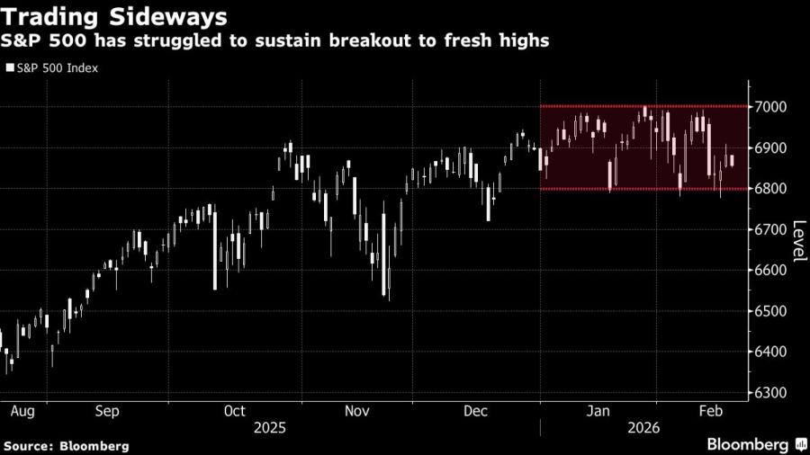 Indeks S&P 500 pokazuje znake pritiska, krećući se u uskom opsegu od oko 6.800 do nešto ispod 7.000. Investitori su smanjili izloženost akcijama na najniži nivo od jula, prema anketi američke Nacionalne asocijacije aktivnih investicionih menadžera.