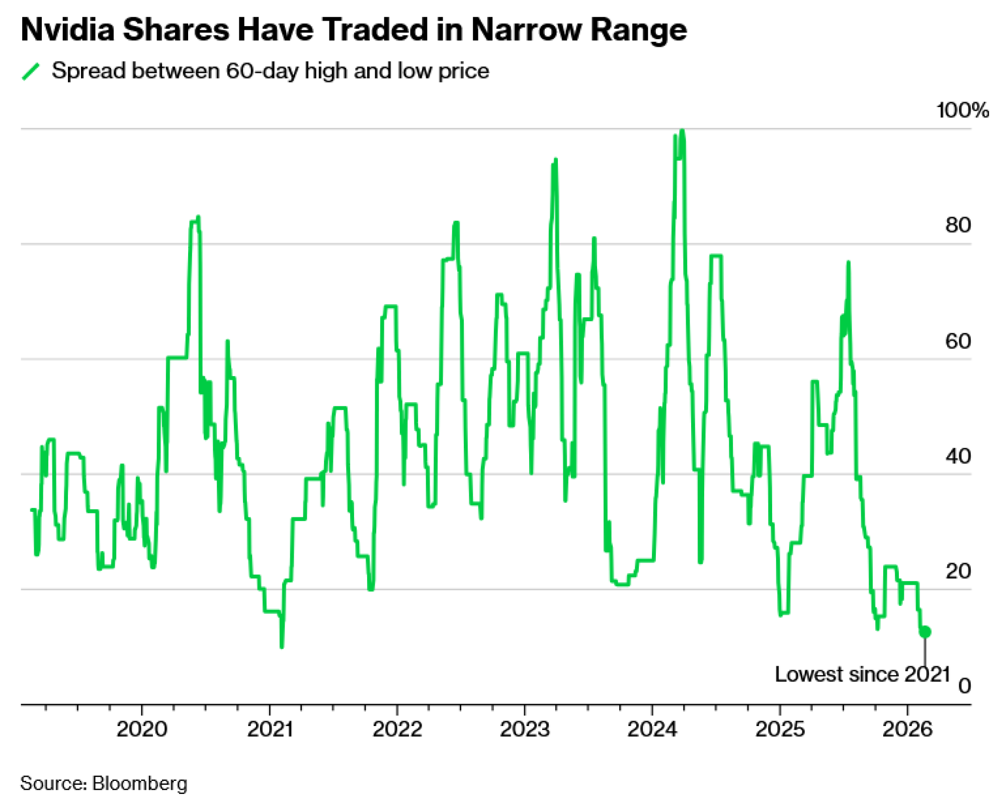 Cena akcija Nvidije već mesecima stagnira: porasla je za samo 1,7 odsto od početka četvrtog kvartala, što je nešto manje od rasta indeksa S&P 500 od 3,3 odsto u istom periodu. Akcije su jedva u plusu od početka godine i nalaze se u donjoj polovini kompanija unutar indeksa. To je priličan pad za firmu koja je ne tako davno bila među vodećim u indeksu i beležila dvocifrene godišnje procente dobiti.