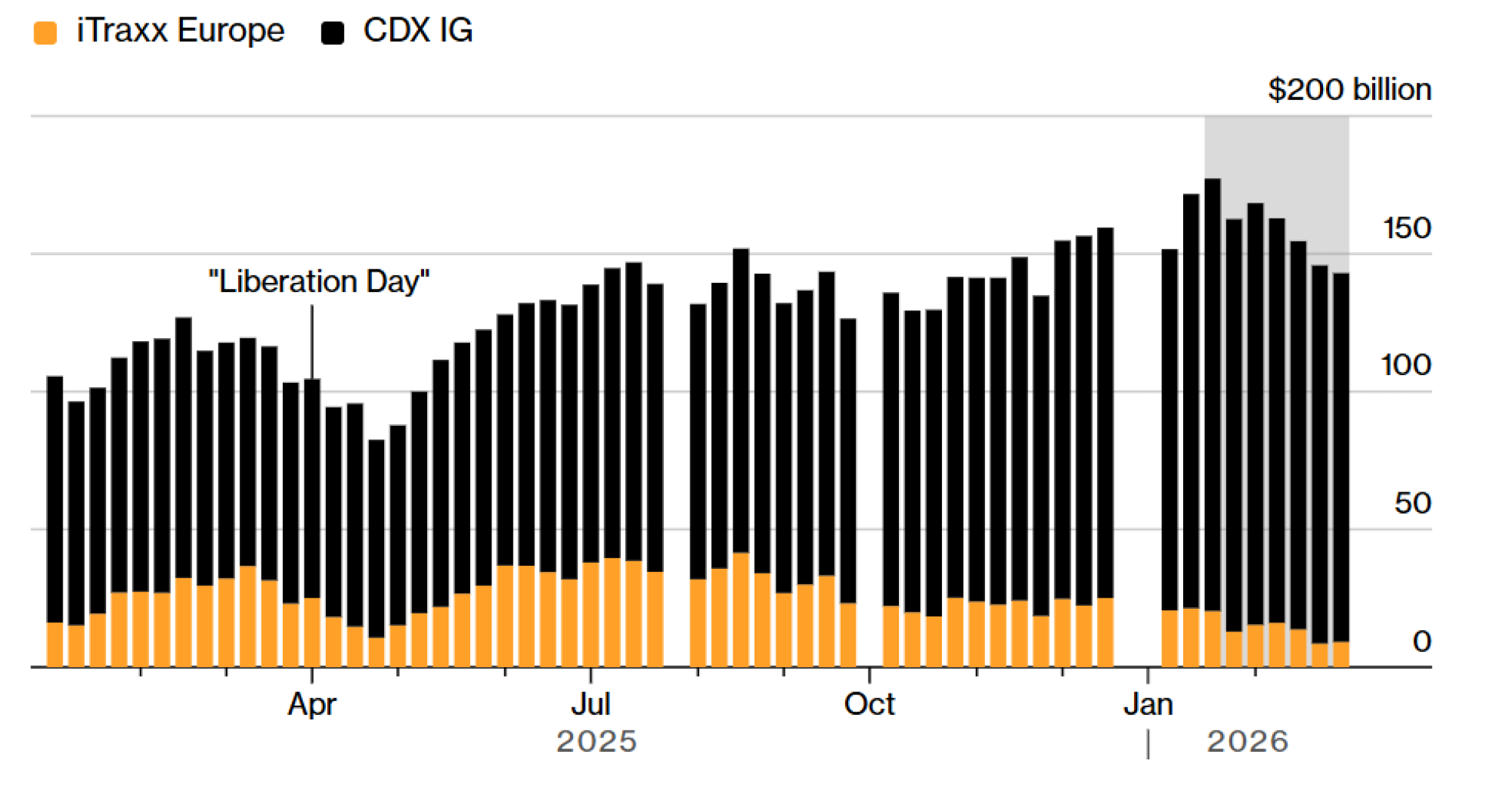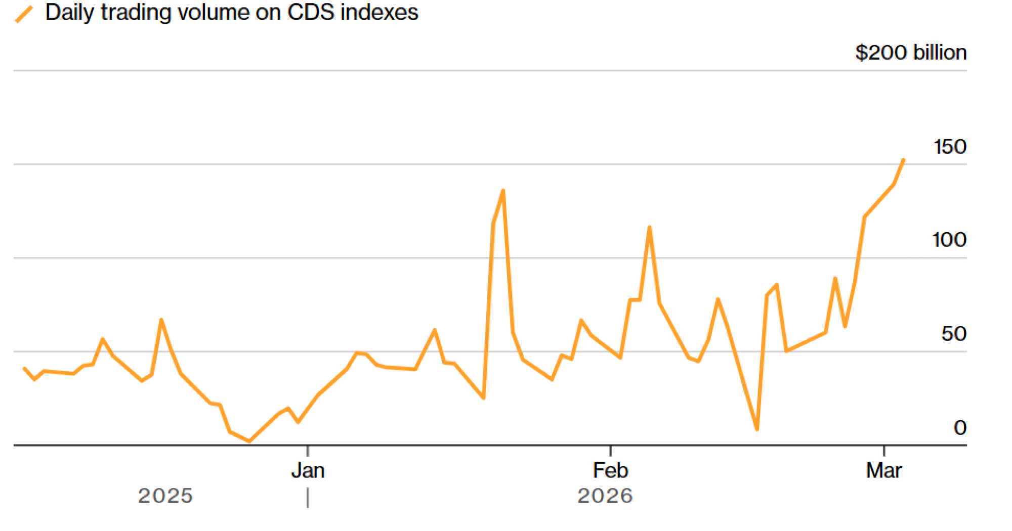 Optimistične opklade u CDS indeksima slabe poslednjih nekoliko nedelja usled zabrinutosti u vezi sa softverskim sektorom, prema podacima DTCC koje je prikupio Barclays Plc. Nedeljni podaci još uvek ne odražavaju uticaj rata u Iranu, iako skok spredova CDS indeksa uz visok obim trgovanja sugeriše da se promena pozicioniranja i dalje nastavlja.