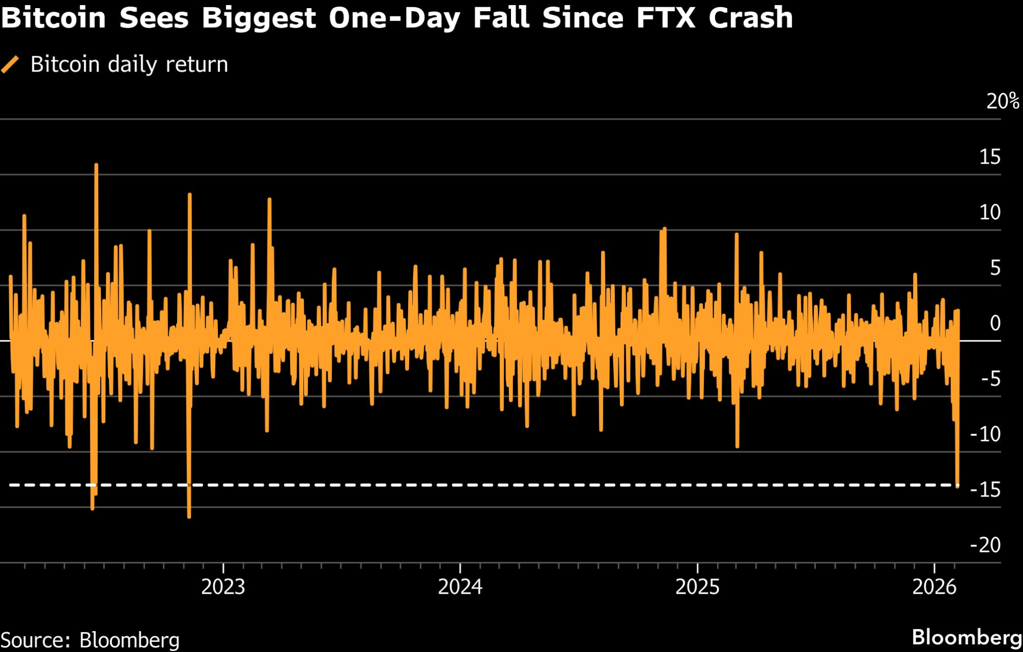 Bitcoin je u četvrtak pao za više od 13 odsto, što je najveći jednodnevni pad od novembra 2022, kada je propala berza FTX Sama Bankman-Frieda. Zbog tog pada vrednost tokena se nakratko više nego prepolovila u odnosu na istorijski maksimum od preko 126.000 dolara dostignut 6. oktobra.