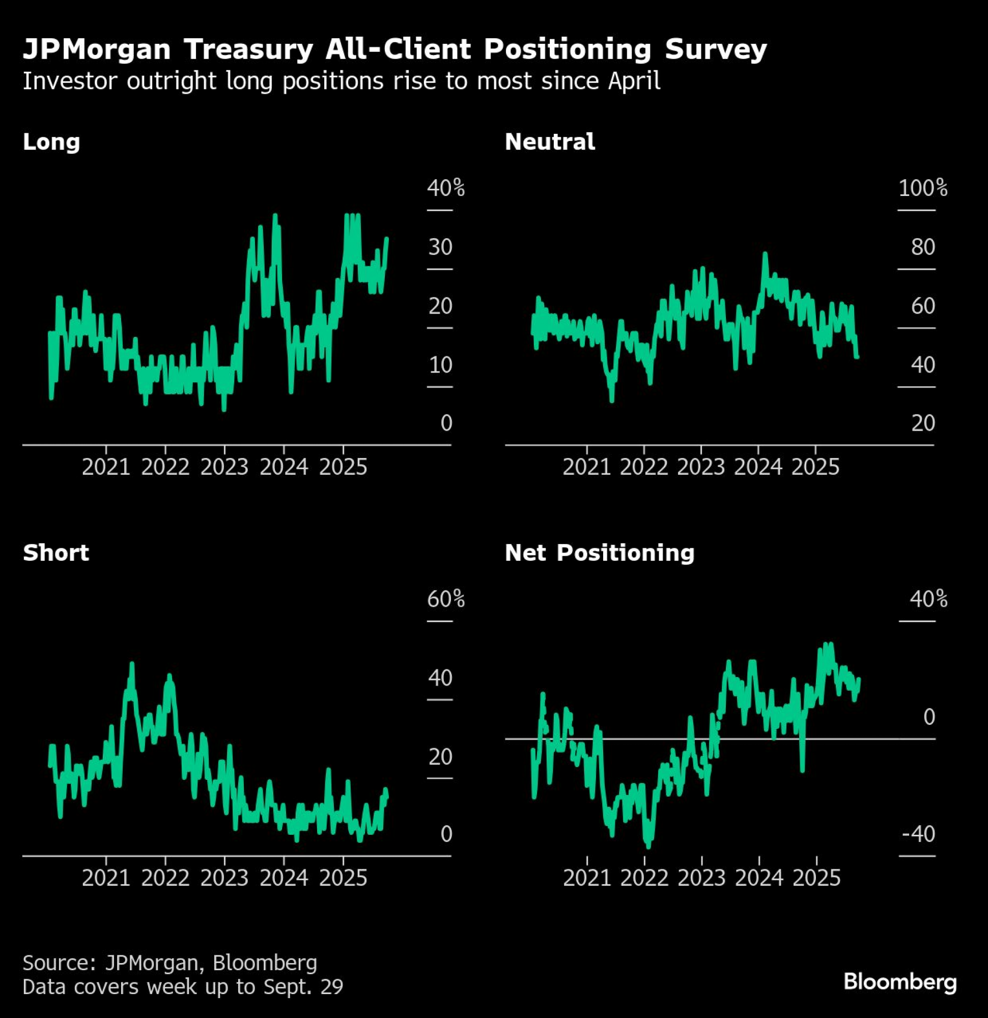 U nedelji do 29. septembra, klijenti banke povećali su duge pozicije u državnim hartijama od vrednosti za dva procentna poena, podigavši ih najviše od 7. aprila. Kratke pozicije su pale za dva procentna poena, dok neutralne nisu pretrpele značajnije promene.