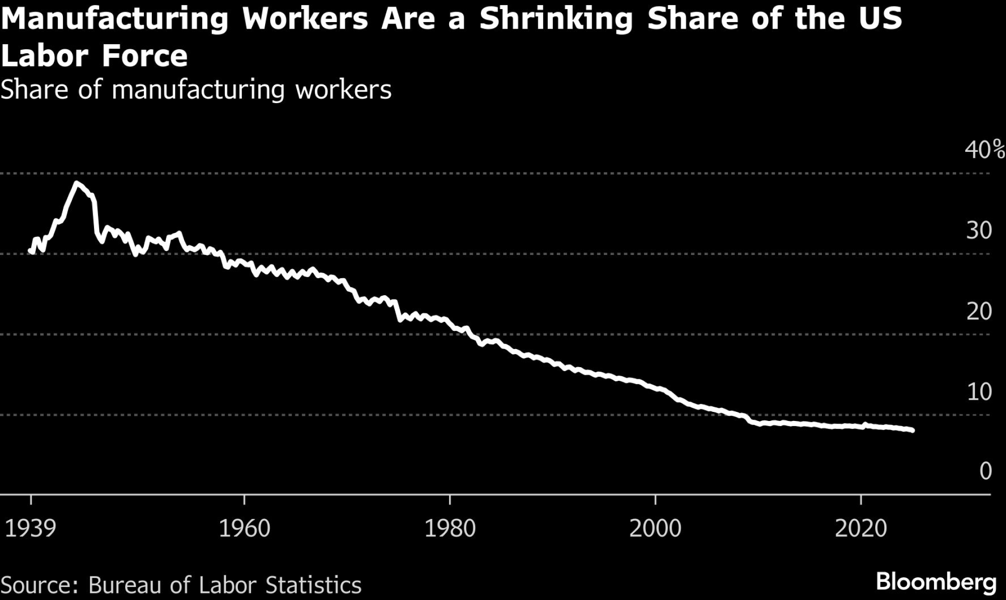 Radnici u proizvodnji čine sve manji udeo u radnoj snazi SAD | Bloomberg