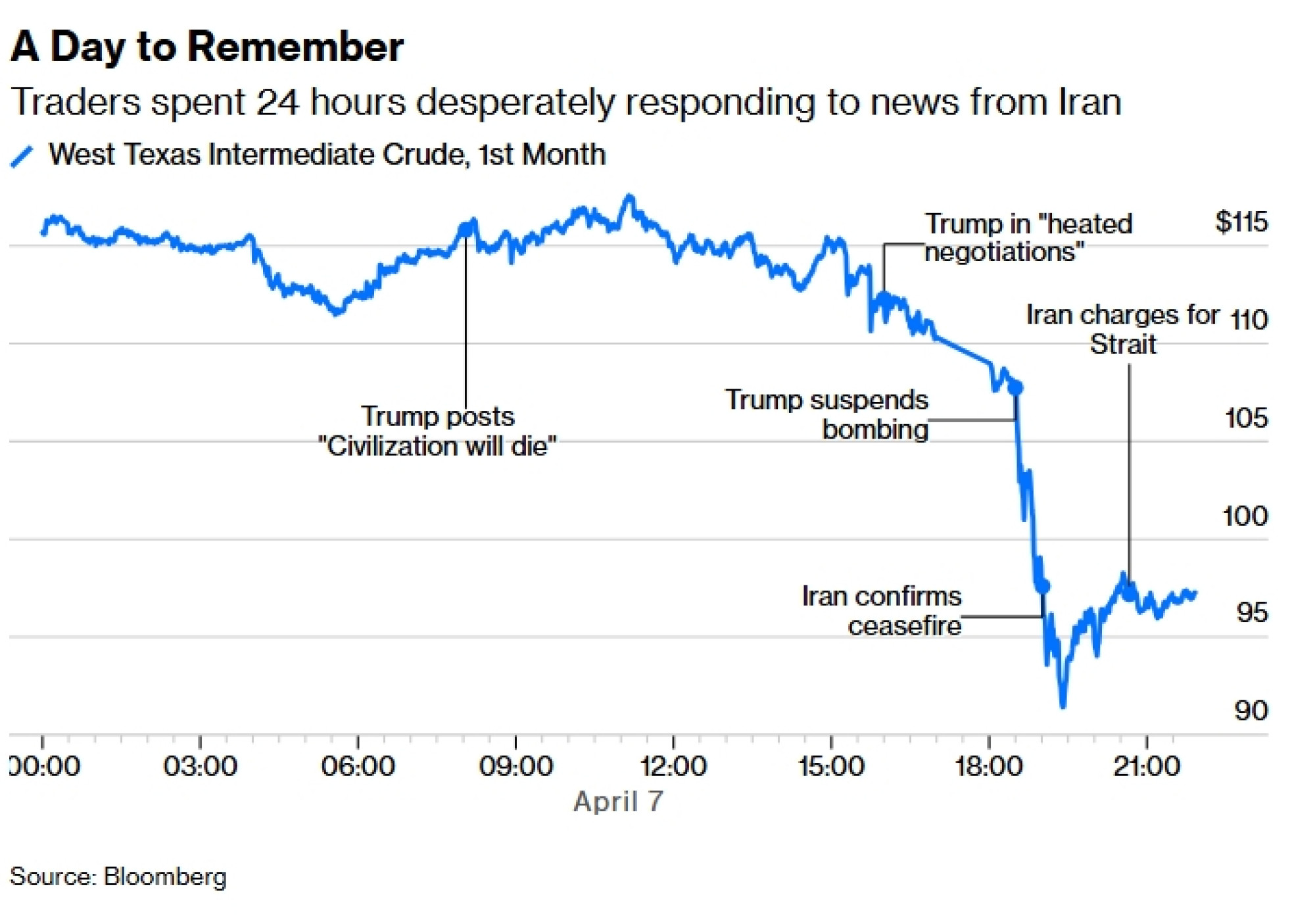 Reči su suvišne. Međutim, nešto više od sat vremena pre isteka njegovog roka, usledio je nalet aktivnosti. Posrednik Pakistan zatražio je obustavu, nakon čega je Donald Trump otkazao planirano bombardovanje i najavio dvonedeljni prekid vatre koji će početi čim Iran ponovo otvori Ormuski moreuz. Tržišta su reagovala na čvrstu činjenicu da civilizacija neće biti uništena, a cene nafte su se strmoglavile. Zatim je stigla ključna potvrda iranskog rukovodstva — zaista su pristali na prekid vatre. Pregovori pod pokroviteljstvom Pakistana zakazani su za petak. Nedugo potom pojavila se informacija da Iran i dalje planira da naplaćuje prolaz kroz taj međunarodni plovni put.