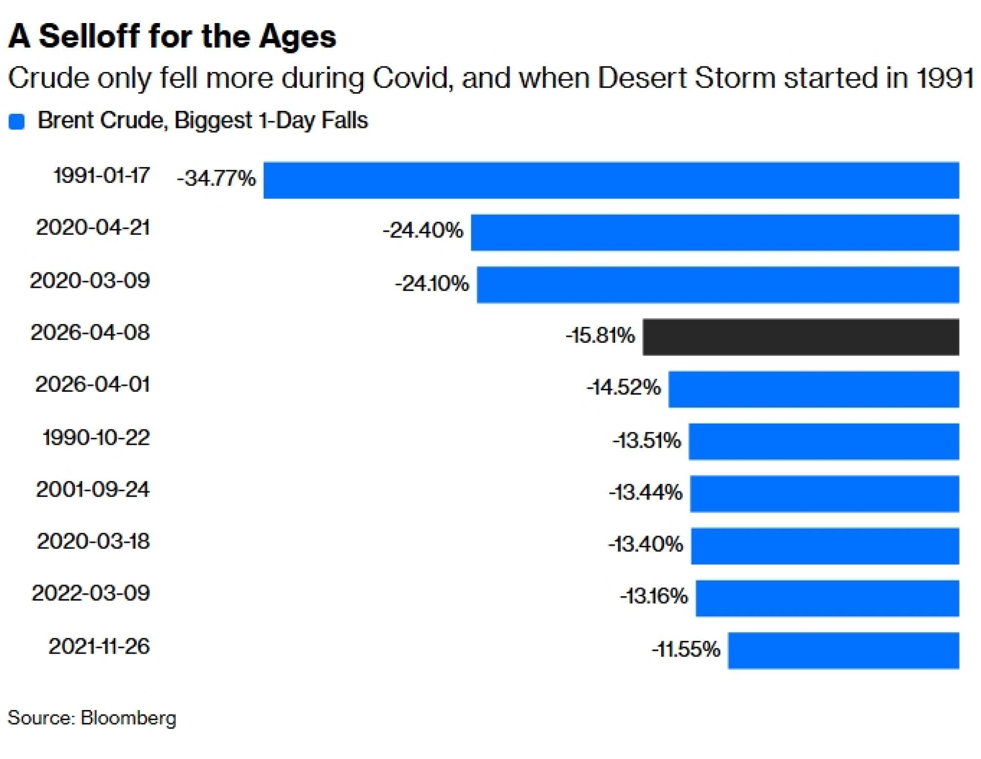 Gledano dalje u prošlost, tržište ovo procenjuje kao zaista istorijski razvoj događaja. Ovo je 10 najvećih dnevnih padova u ugovoru za Brent naftu od 1990. godine.