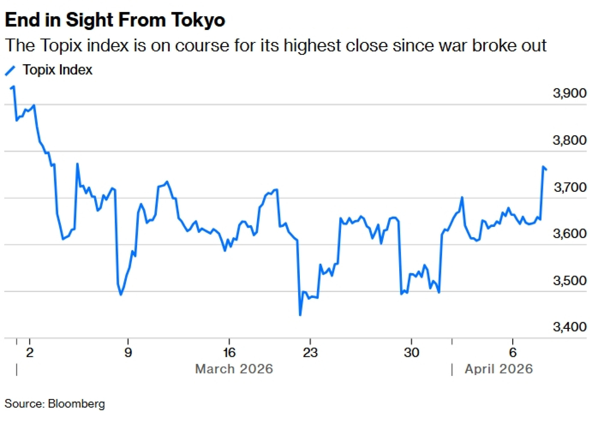 To se već vidi u snažnom rastu američkih terminskih ugovora na akcije. U ranom trgovanju u Tokiju, indeks Topix vratio se na najviši nivo od izbijanja rata 28. februara.
