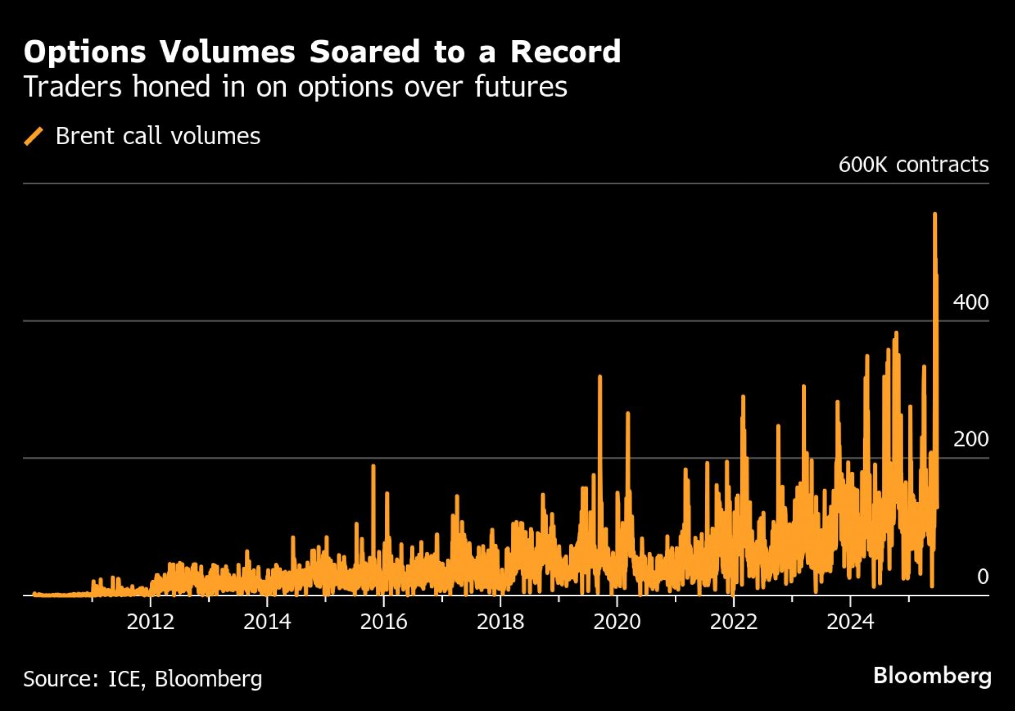 Kako je brzi tempo vesti učinio trgovanje fjučersima na naftu znatno rizičnijim, novac je pohrlio ka tržištu opcija, gde trgovci mogu da se osiguraju protiv skoka cena po nižoj ceni nego što bi to platili trgujući fjučersima.