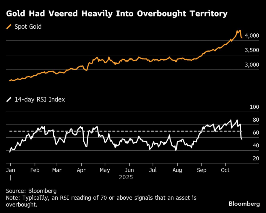 Cena zlata na spot tržištu pala je ispod 4.020 dolara po unci na početku trgovanja u SAD, nakon kolebanja tokom kojih je ranije oslabila gotovo tri odsto, a zatim se delimično oporavila. To je usledilo dan nakon što je plemeniti metal potonuo čak 6,3 odsto, pošto su tehnički indikatori pokazivali da je ovogodišnji rast cene, koji je obarao rekorde jedan za drugim, verovatno bio prekomeran.
