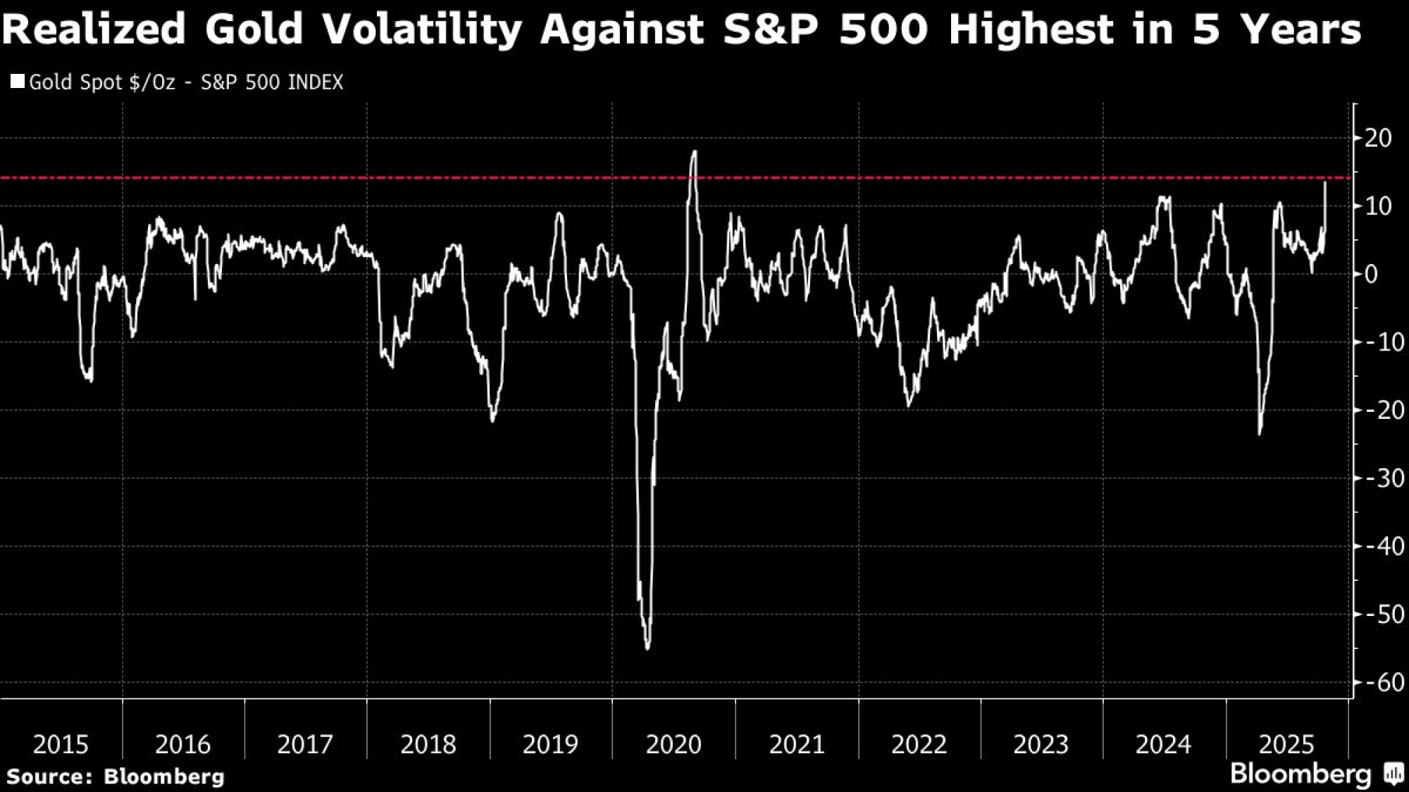 Uz to, podaci koje je prikupio Bloomberg pokazali su da je realizovana volatilnost cena zlata u odnosu na referentni berzanski indeks S&P 500 prethodne nedelje dostigla najviši nivo od 2020. godine.