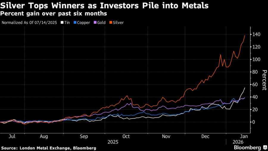 Robe su zabeležile zapanjujuće dobitke od kraja 2025. godine, dok se trgovci pozicioniraju za godinu u kojoj se očekuje da će Federalne rezerve dodatno sniziti troškove zaduživanja kako bi podstakle rast u SAD. To je išlo naruku baznim metalima kojima je potrebna snažna proizvodna potražnja, dok plemeniti metali dodatno profitiraju zbog obnovljenih napada Trumpove administracije na Fed i sve napetijeg geopolitičkog okruženja.