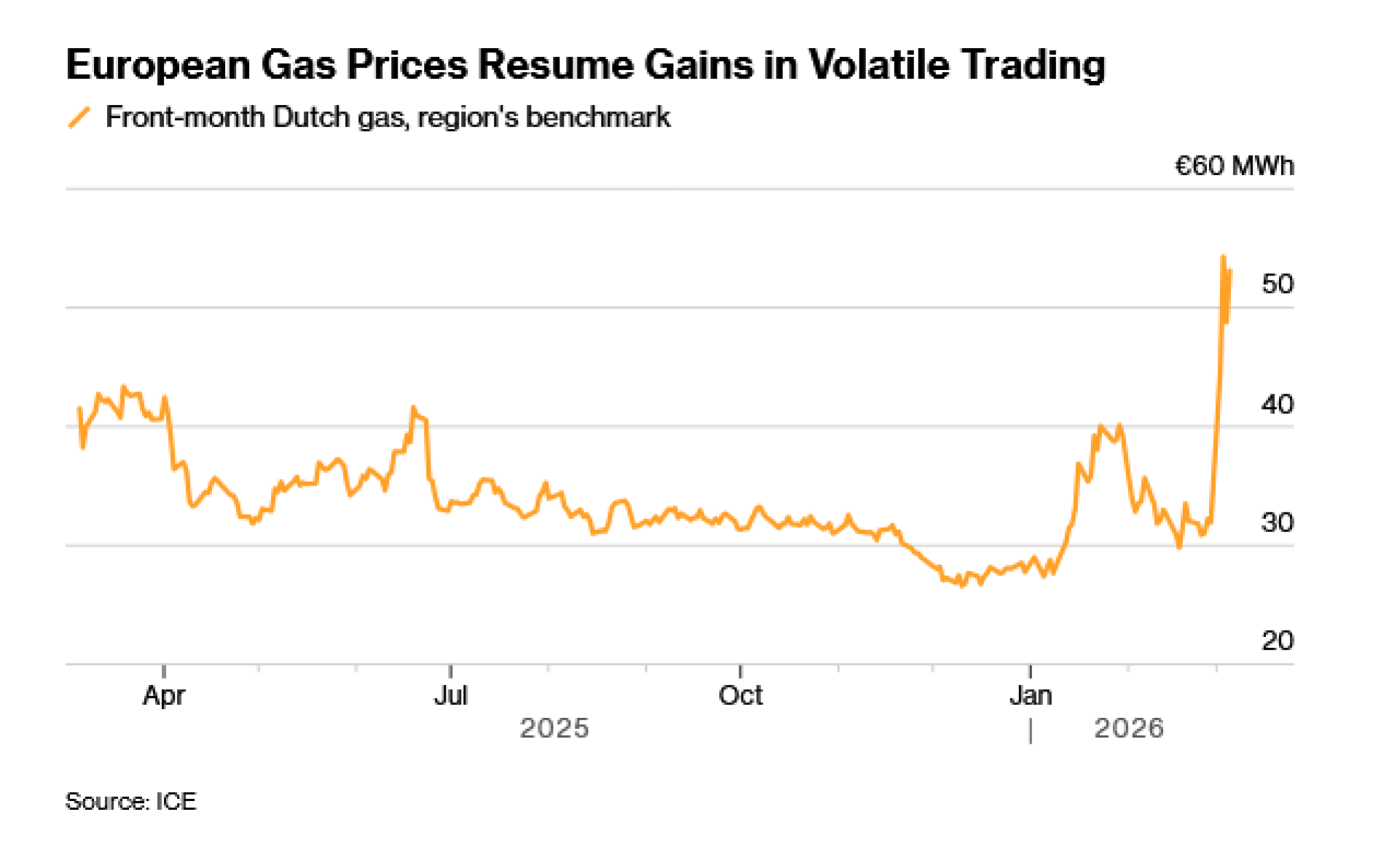 Holandski fjučersi koji ističu sledećeg meseca, koji služe kao evropsko merilo za gas, porasli su za 9,2 odsto na 53,26 evra po megavat-satu do 8.25 ujutro u Amsterdamu.