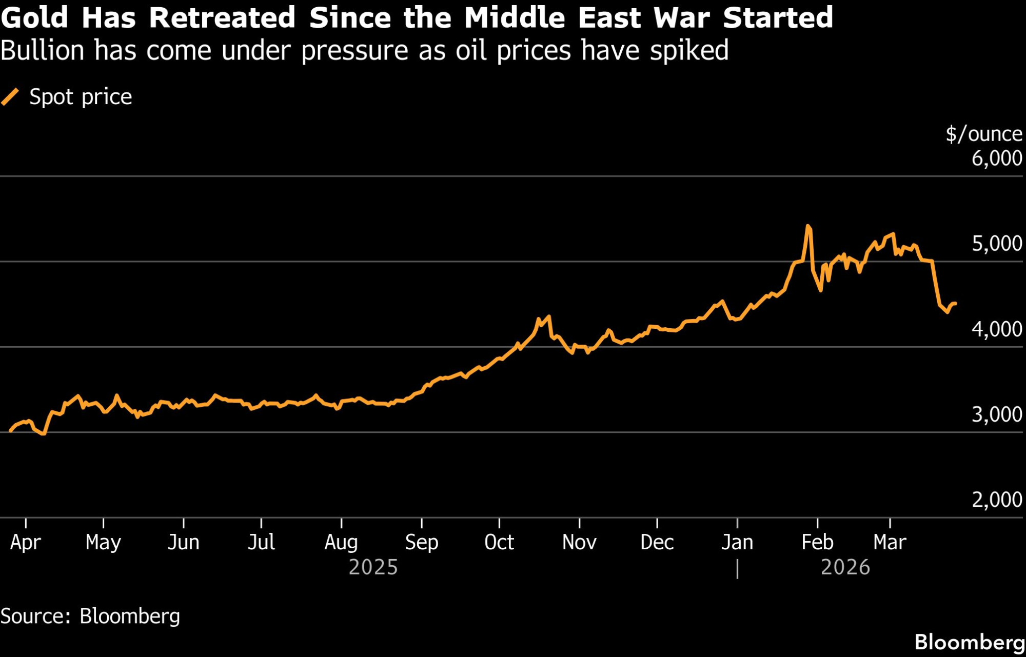 Cena ovog plemenitog metala pala je i za dva odsto, spustivši se ispod 4.420 dolara po unci, čime su izbrisani gotovo svi dobici iz prethodne dve sesije. Dok je Bela kuća tvrdila da su razgovori o okončanju sukoba sa Iranom u toku, Teheran je odbacio američki predlog za prekid vatre i izneo sopstvene uslove. Istovremeno, uprkos diplomatskim naporima, SAD su u region uputile više hiljada vojnika, dodatno podstičući strah da će doći do rizične kopnene invazije.