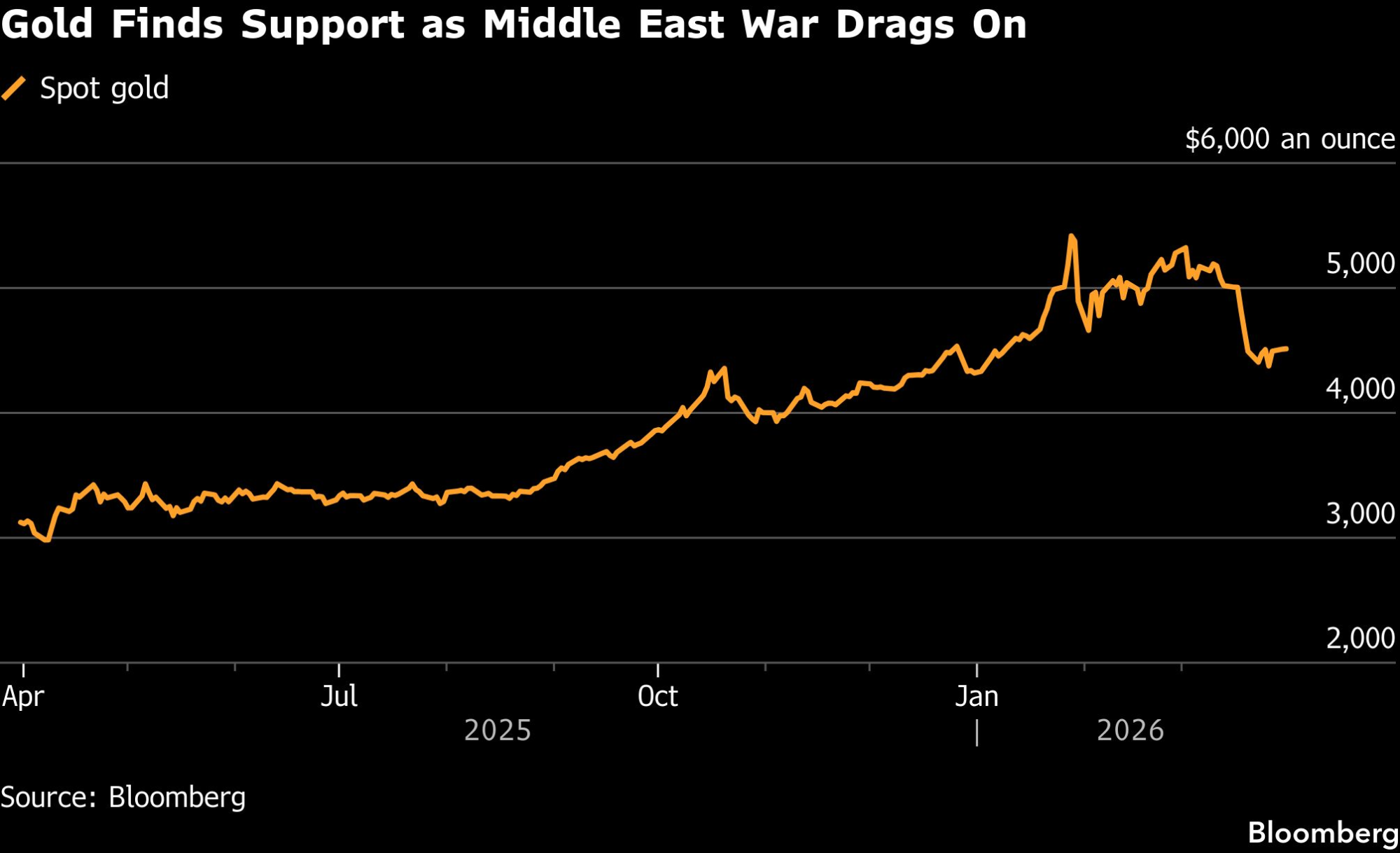 "Tržišta se baš mnogo oslanjaju na naslove, dok se u stvarnosti, kako se čini, vrlo malo toga promenilo", rekao je David Wilson, direktor strategije za robe u BNP Paribas SA. "To sugeriše da će, ukoliko se postigne mirovni sporazum, zlato naglo rasti. Nasuprot tome, ako dođe do nekog vida kopnene invazije američkih snaga, možemo očekivati da zlato krene u suprotnom pravcu i pada."