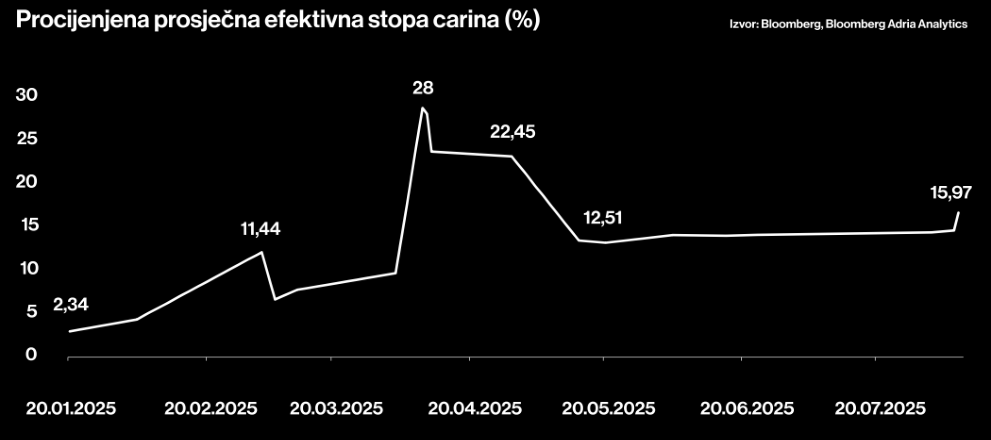 Carine na robu iz EU su ranije iznosle 2,5 odsto, a Trump je u jednom trenutku pretio carinskom stopom od 50 odsto. "Iako je stopa trenutno na 15 odsto, sve je to podložno promenama zbog Trumpove nepredvidivosti", istakao je Vujanić.