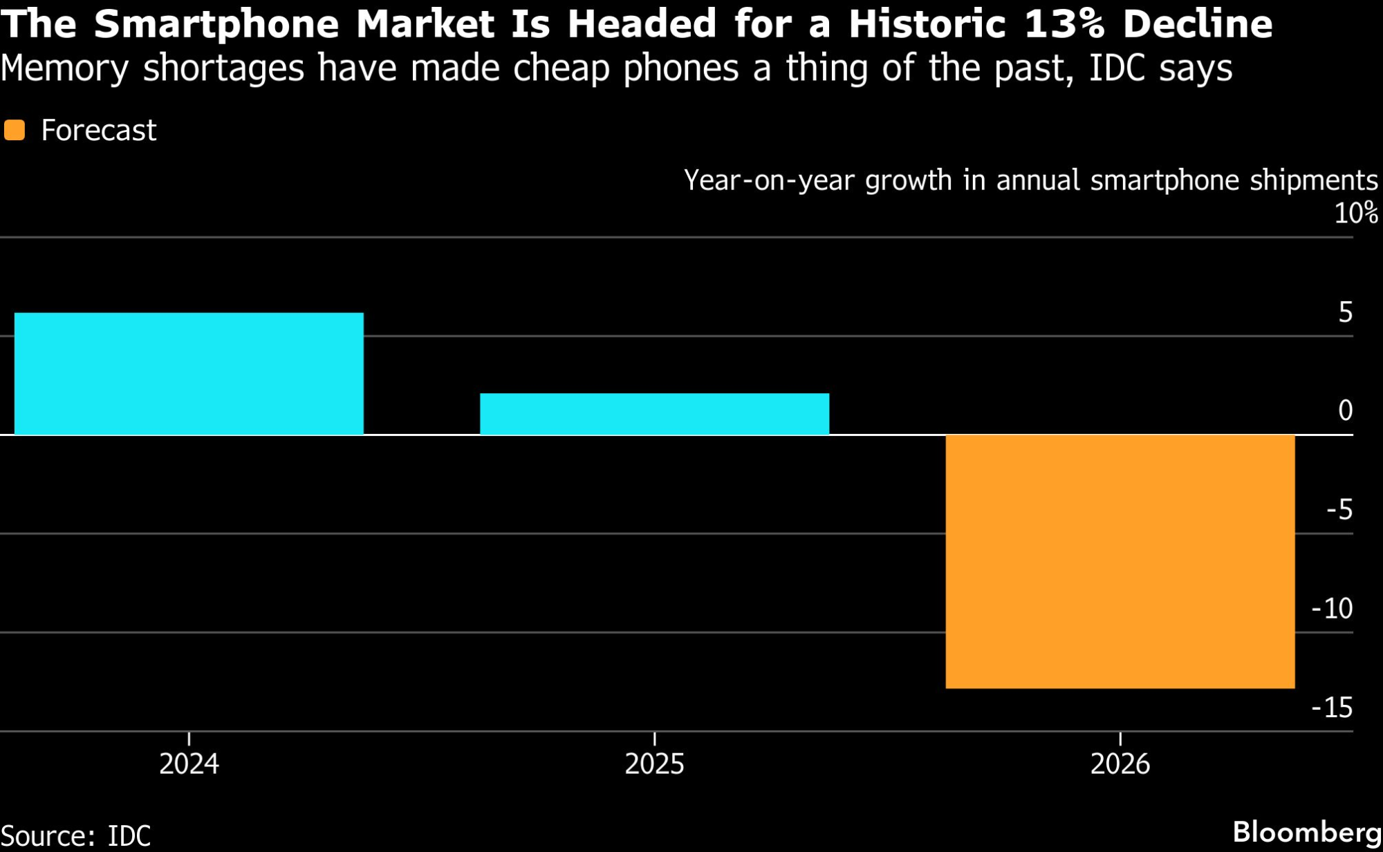 IDC koji prikuplja i analizara podatake o tehnološkom tržištu širom sveta, sada predviđa da će u 2026. biti isporučeno oko 1,1 milijardu telefona, dok je prošle godine bilo isporučeno 1,26 milijardi. Proizvođači reaguju na visoke cene komponenti tako što smanjuju tehničke specifikacije, prestaju da proizvode neprofitabilne modele i usredsređuju se na skuplje uređaje.